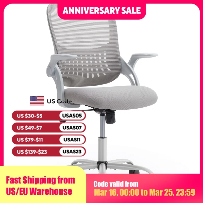 【Space-saving】- Flip-up armrests are available and won't be in your way when not in use. The Armrests of the computer chair provide comfortable support for your arms and can be flipped up to save space effectively while not in use.