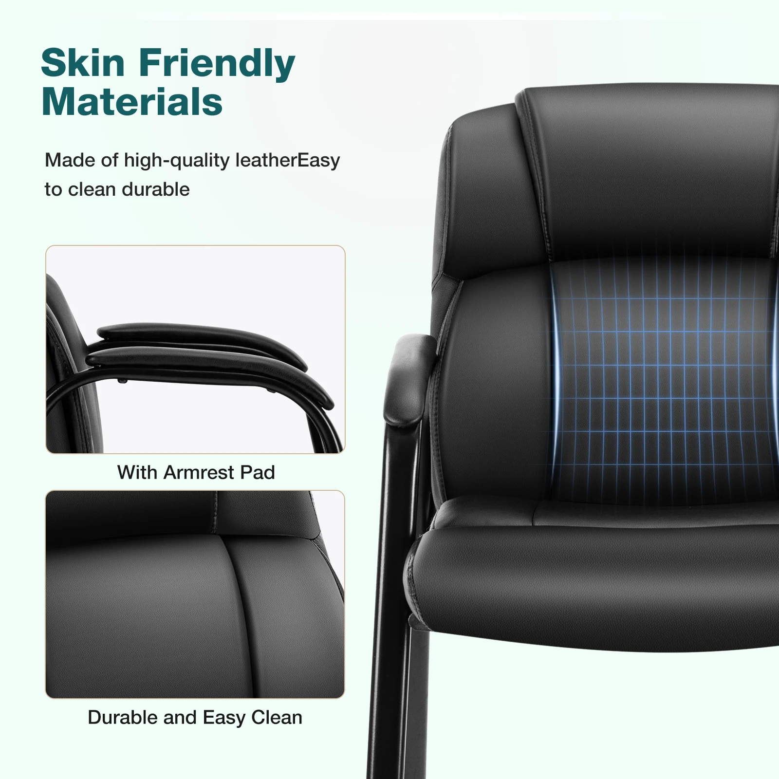 Simple Fashion➤➤ The reception chair is made of high-quality PU leather, which is not easy to wear and tear, waterproof and dustproof, and easy to clean. The leather surface and edges are finely sewn to effectively fix and avoid surface displacement.